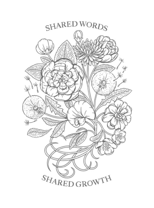 一つの根から団体のシンボルマークであるタンポポ、アラセイトウ(花言葉は「思いやり・見つめる未来」)、スイートピー(花言葉は「やさしい思い出・門出」、サンザシの花(花言葉は「希望・新しい光」)が伸びる様子を描きました。さまざまな課題に向き合う人たち一人ひとりが共通の志を持ち、つながりを感じながら活動する様子を表現しています。